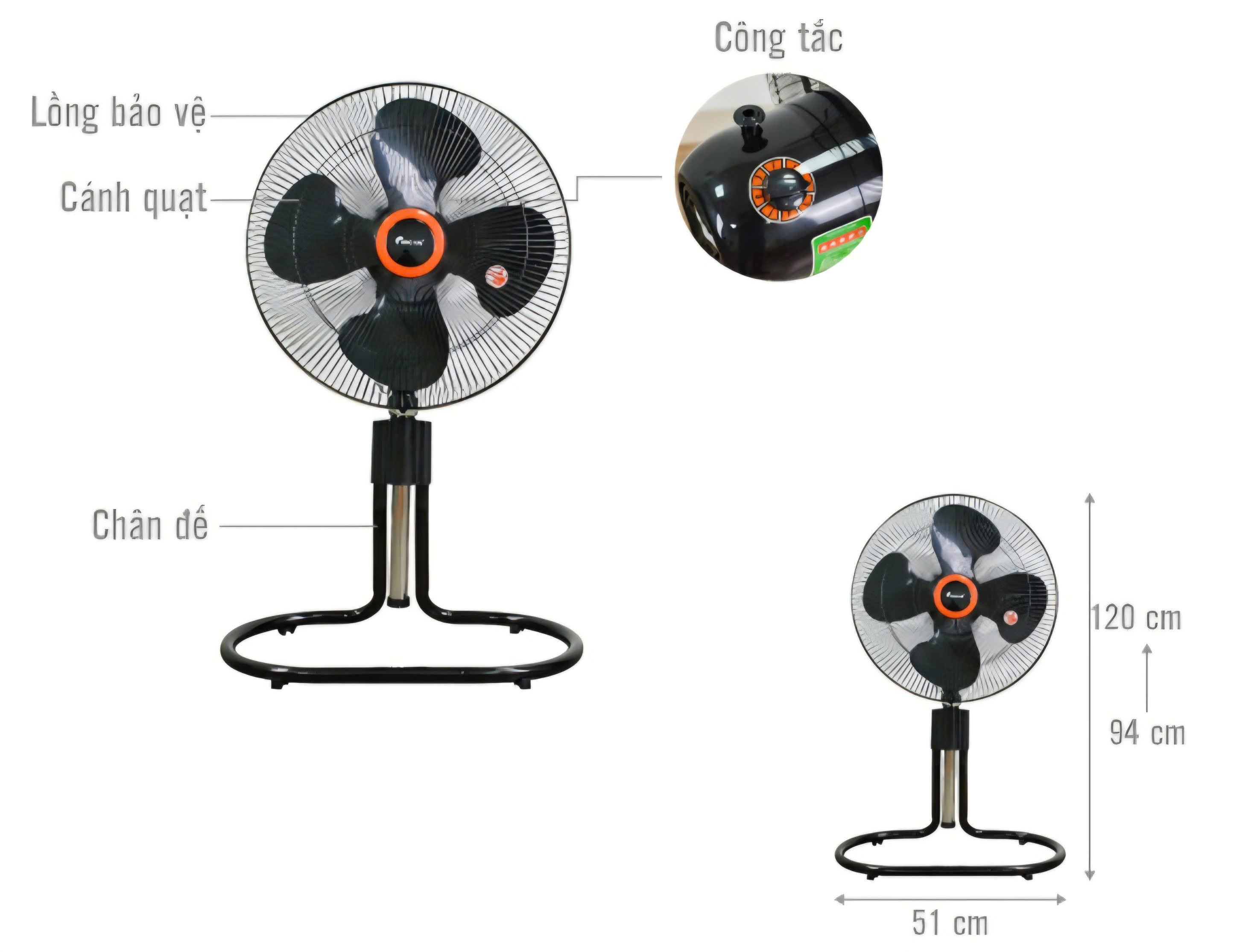 Mã sản phẩm: Quạt sàn Chinghai FF2318 Công suất: 108w Điện thế: 220V Sải cánh: 45cm